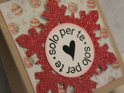 Per le timbrine emiliane ho realizzato una card dai colori natalizi canonici rosso-verde, con la " Mamma " molto giovanile in versione castana .
